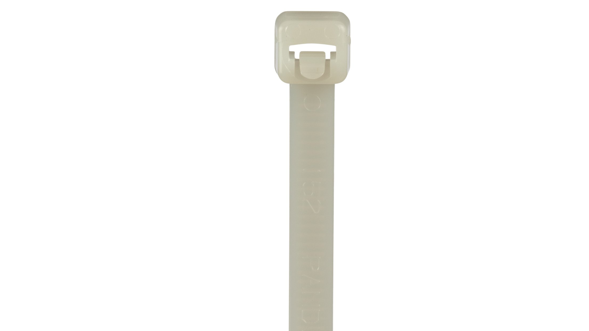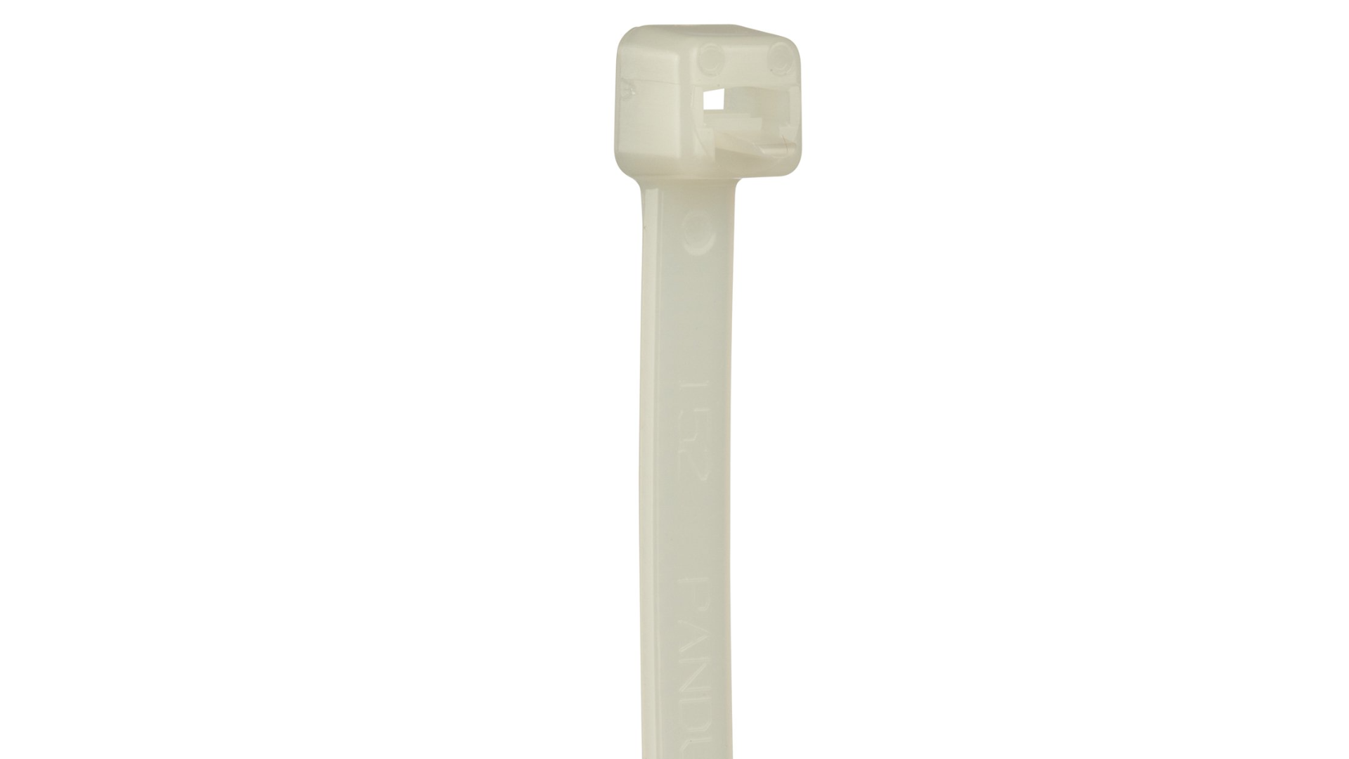 The Panduit PRT3S-M is a Pan-Ty® releasable cable tie with a standard cross section, featuring a release tab that allows easy removal and reuse without cutting—ideal for applications where changes, adjustments, or servicing are anticipated during development, production, or field maintenance. It provides reliable bundling with a strong locking mechanism (when engaged), low insertion force, and easy threading. Constructed from durable natural nylon 6.6, it's suitable for indoor use requiring moderate tensile strength, secure closure, and the flexibility of releasability. Compatible with Panduit installation tools; max bundle diameter approximately 3.00" (76 mm).